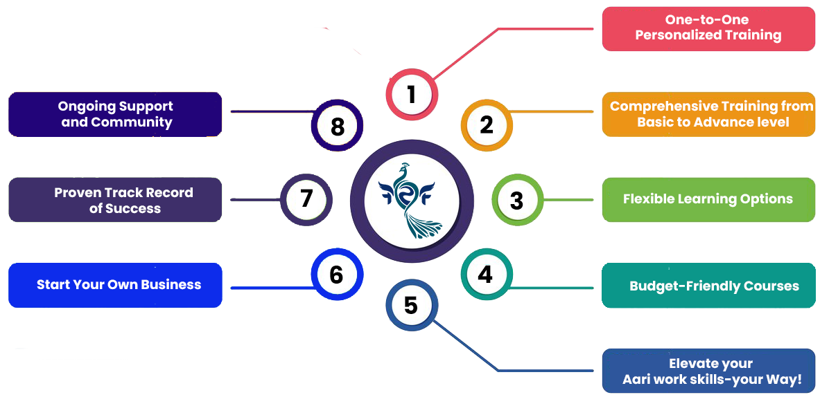 Turn your passion for Aari embroidery into a profitable business from the comfort of your home with Fabric 2 Fantasy Aari Studio & Training Center! With just a little time investment, you can master the art of Aari embroidery and start your own entrepreneurial journey No matter where you are, distance is never a barrier! Our expert-led live sessions ensure you receive the best training and personalized guidance to master Aari work with confidence.